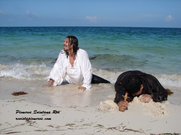 El primer encuentro con nativos en Quintana Roo no pudo ser más desafortunado: los indios Caribes, depredadores del litoral, antropófagos procedentes del río Orinoco, capturaron a todos, sacrificaron a Valdivia y a otros cuatro (sacándoles el corazón) y posteriormente se los comieron ante la atónita mirada de Guerrero y Aguilar. Apresados en jaulas parecidas a las del bambú, los restantes eran engordados para saciar los apetitos de sus captores, pero el instinto de supervivencia los obligó a escapar, encaminándose sin rumbo fijo entre la selva.